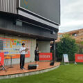 開業からちょうど100年となったこの日、近鉄と合同で鈴鹿市駅前で記念セレモニーを行いました。放送部は、鈴鹿線100周年にちなんだ、鈴鹿線クイズで、みなさんとともに100周年を祝いました。