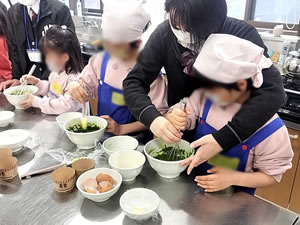 ワークショップには市内外の小学生とその保護者約15人が参加、本校放送部1年生と2年生が1組に1人つき、お茶にあったスイーツ「かぶせ茶マフィン」作りを行いました。できあがったかぶせ茶マフィンに自らきゅうすで淹れたかぶせ茶を保護者とともにいただき、楽しいひとときを一緒に過ごしました。ご参加いただいたみなさん、ありがとうございました。